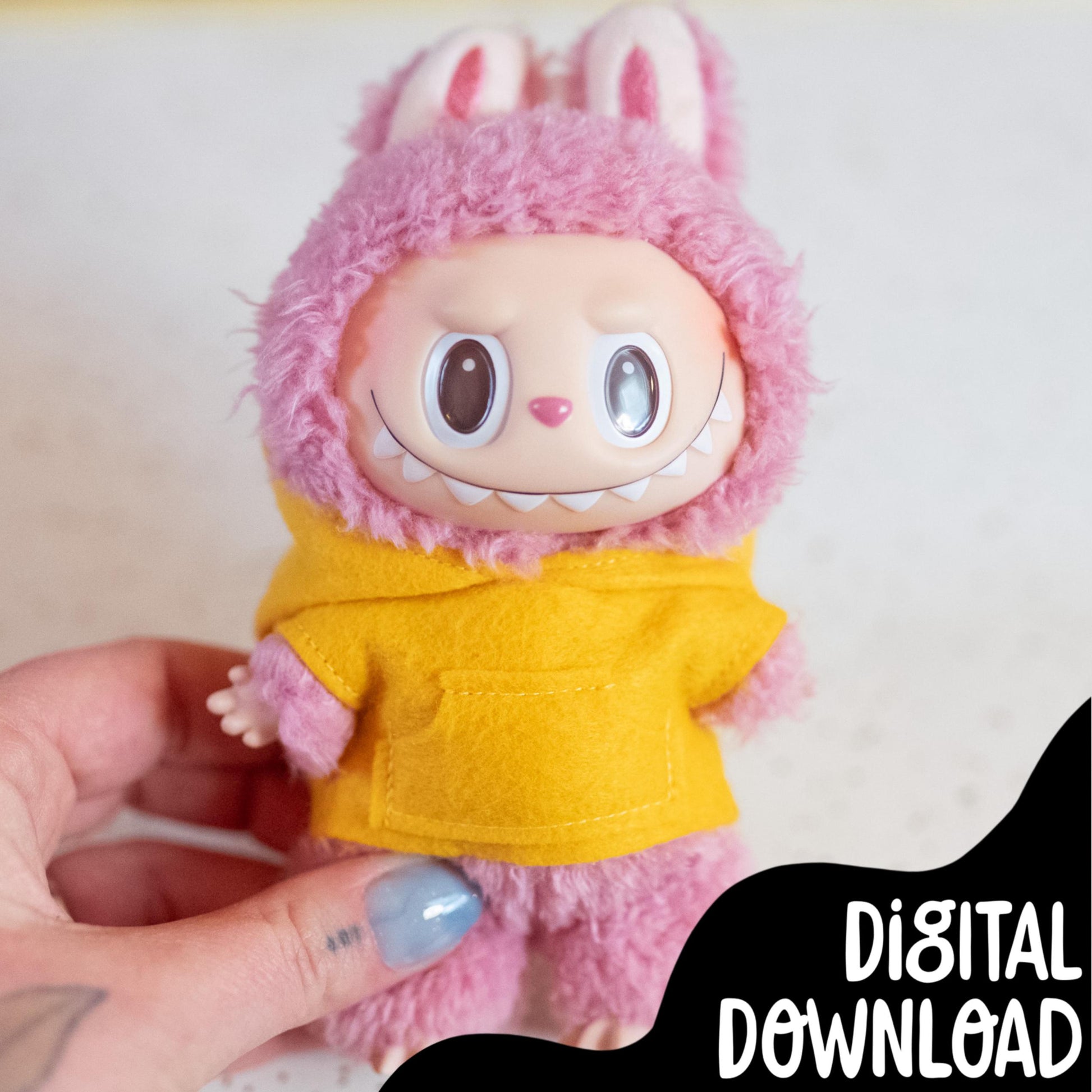 This PDF includes printable instructions and pattern pieces to make a custom Labu bu Hoodie